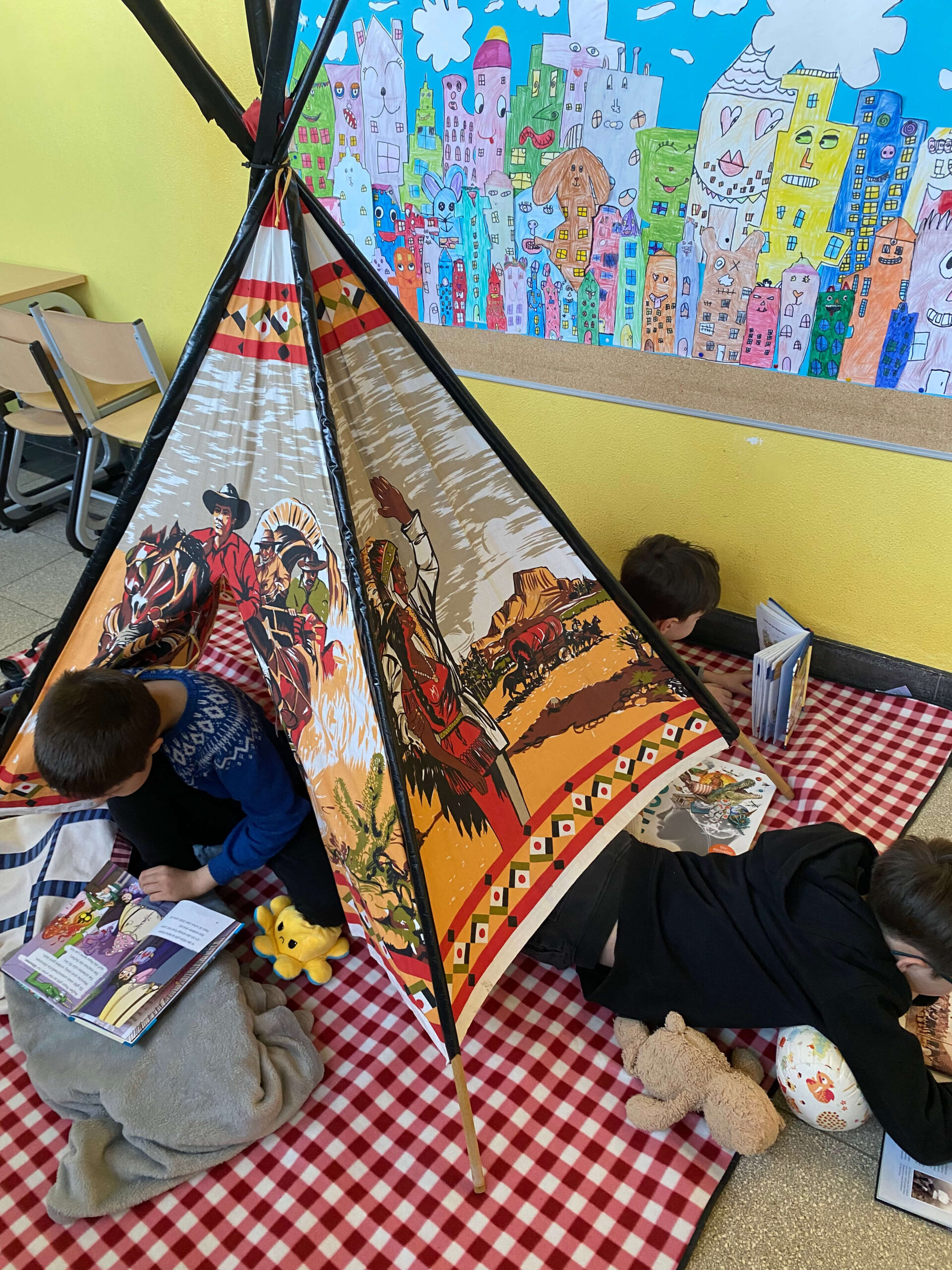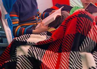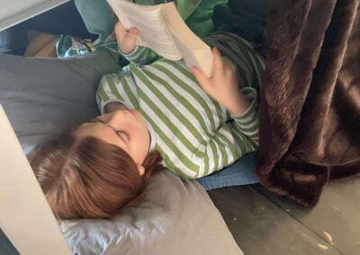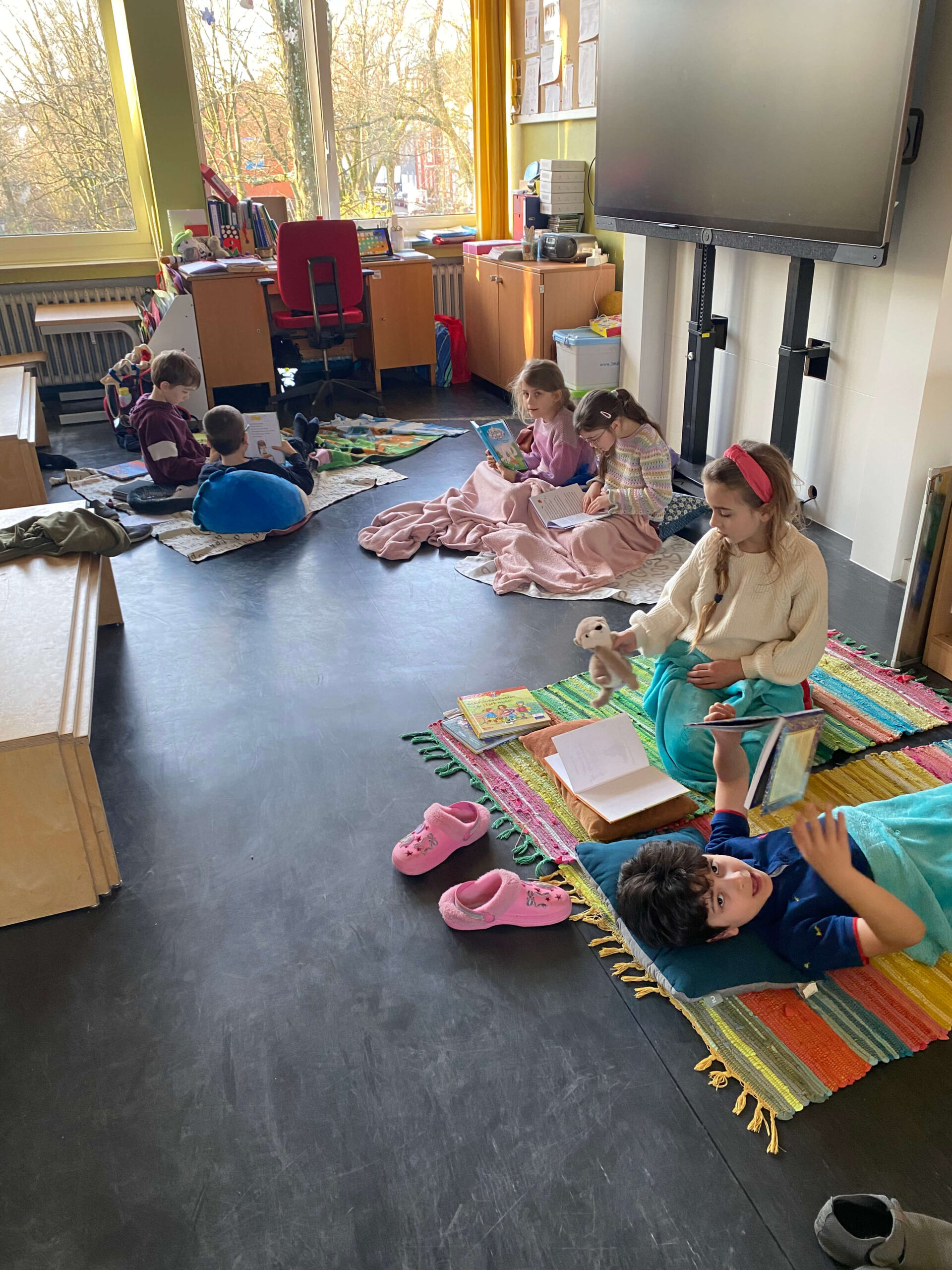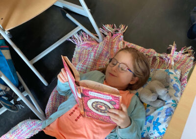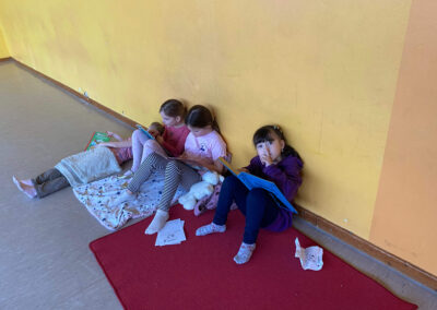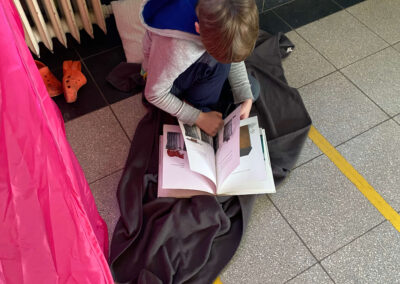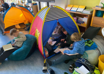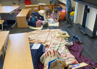 Während der Lesezeit herrschte im ganzen Schulhaus eine friedliche, konzentrierte Stimmung. Ab und zu hörte man ein fröhliches Lachen über eine besonders lustige Stelle oder ein staunendes „Ah!“, wenn etwas Neues entdeckt wurde. Im Gymnastikraum gab es außerdem einen „Ort der Stille“, an dem man ganz ungestört lesen konnte.