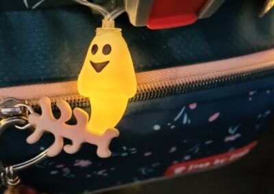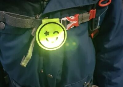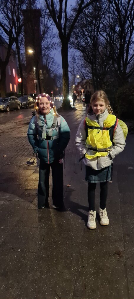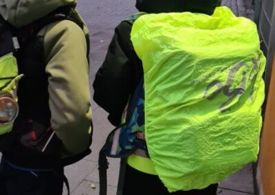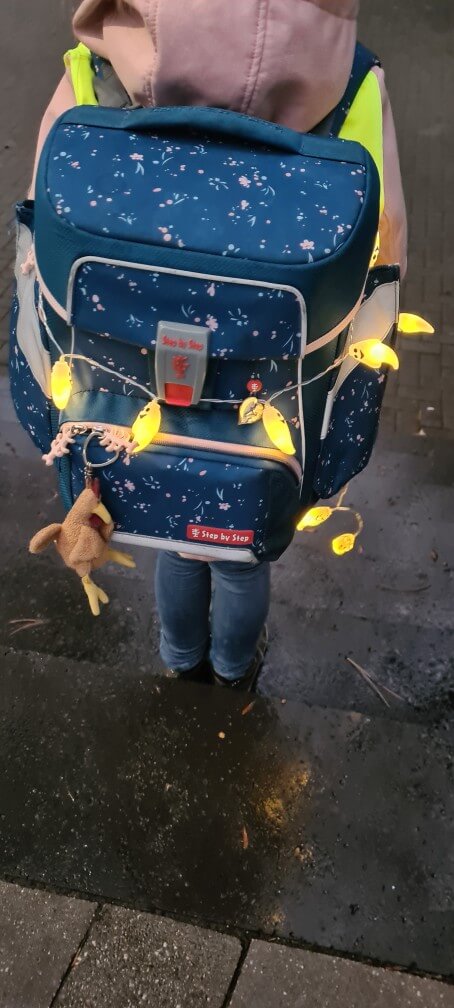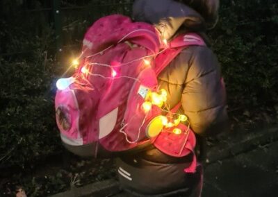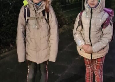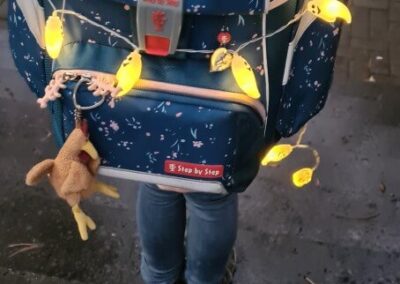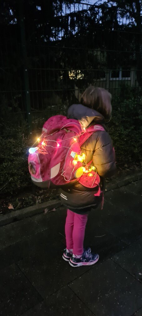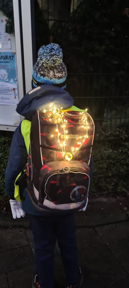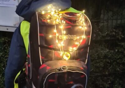 Am Morgen kamen die Kinder leuchtend und gut sichtbar zur Schule – ganz wie kleine Glühwürmchen. Mit reflektierenden Westen und Bändern, blinkenden Ansteckern, kleinen Lichterketten oder kreativen selbst gestalteten Sichtbarkeits-Ideen sorgten sie für ein buntes, fröhliches und vor allem sicheres Bild auf dem Schulweg.