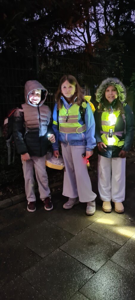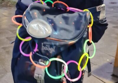 Im Rahmen unserer Aktion „Zu Fuß zur Schule“ fand am 28.11.2025 der besondere Glühwürmchentag statt. Dabei drehte sich alles um das wichtige Thema Sichtbarkeit im Straßenverkehr, besonders jetzt in der dunklen Jahreszeit.