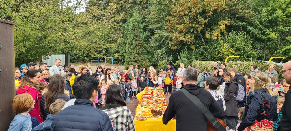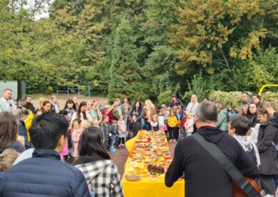 Den feierlichen Auftakt bildete ein gemeinsamer Gottesdienst auf unserem Schulhof. Wir erinnerten mit Liedern, Gebeten und einem kleinen Theaterstück daran, wie wertvoll Gemeinschaft, Dankbarkeit und das tägliche Brot sind.