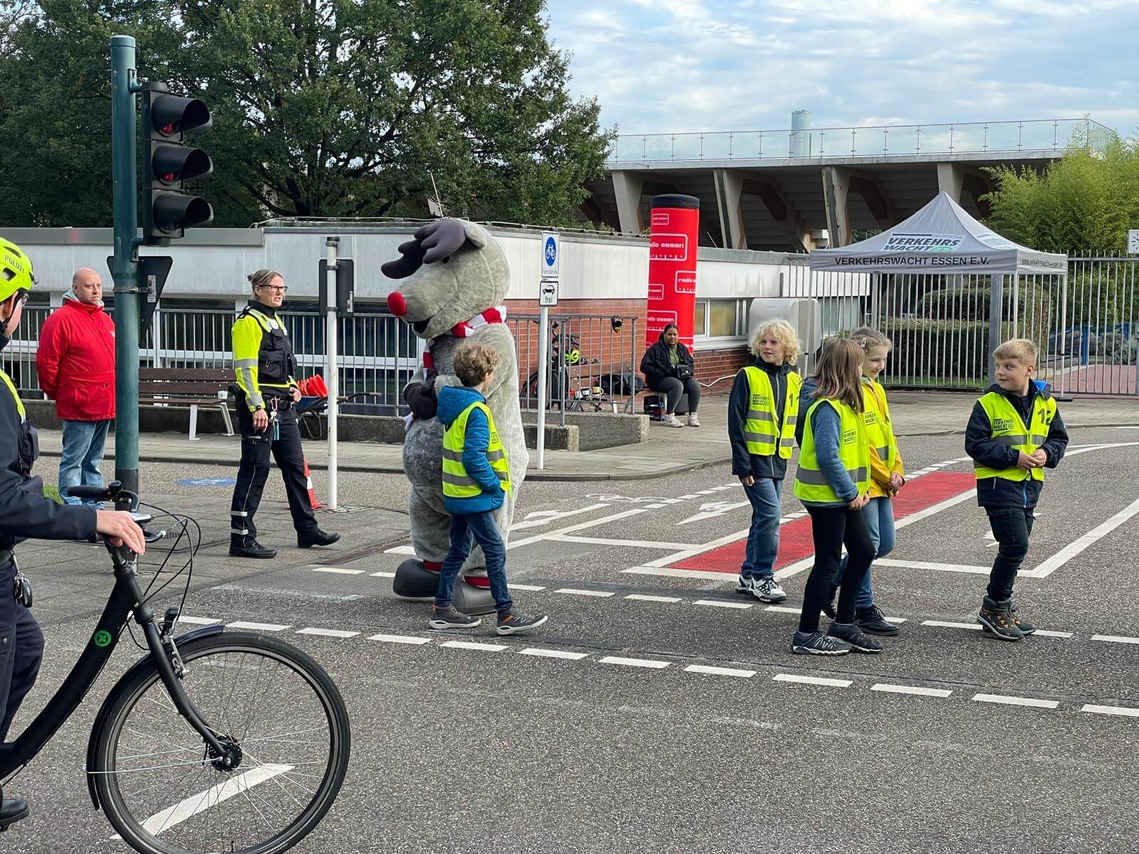 Hurra! Wir, die Klasse 4a, hat gewonnen und durfte an der Verkehrssicherheitsaktion mit Emil von Radio Essen teilnehmen. Wir trafen Emil in der Gruga in der Jugendverkehrsschule. Allerdings war Emil nicht sehr sicher im Straßenverkehr und wir mussten ihm noch sehr viel erklären. Emil zu treffen hat uns großen Spaß bereitet und wir erinnern und sehr gerne an diesen schönen Tag zurück. Vielen Dank an Radio Essen.